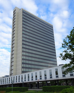 Die beiden höchsten Gebäude Karlsruhes sind die Bernharduskirche am Durlacher Tor und das Hochhaus der Landesversicherunganstalt am Weinbrennerplatz